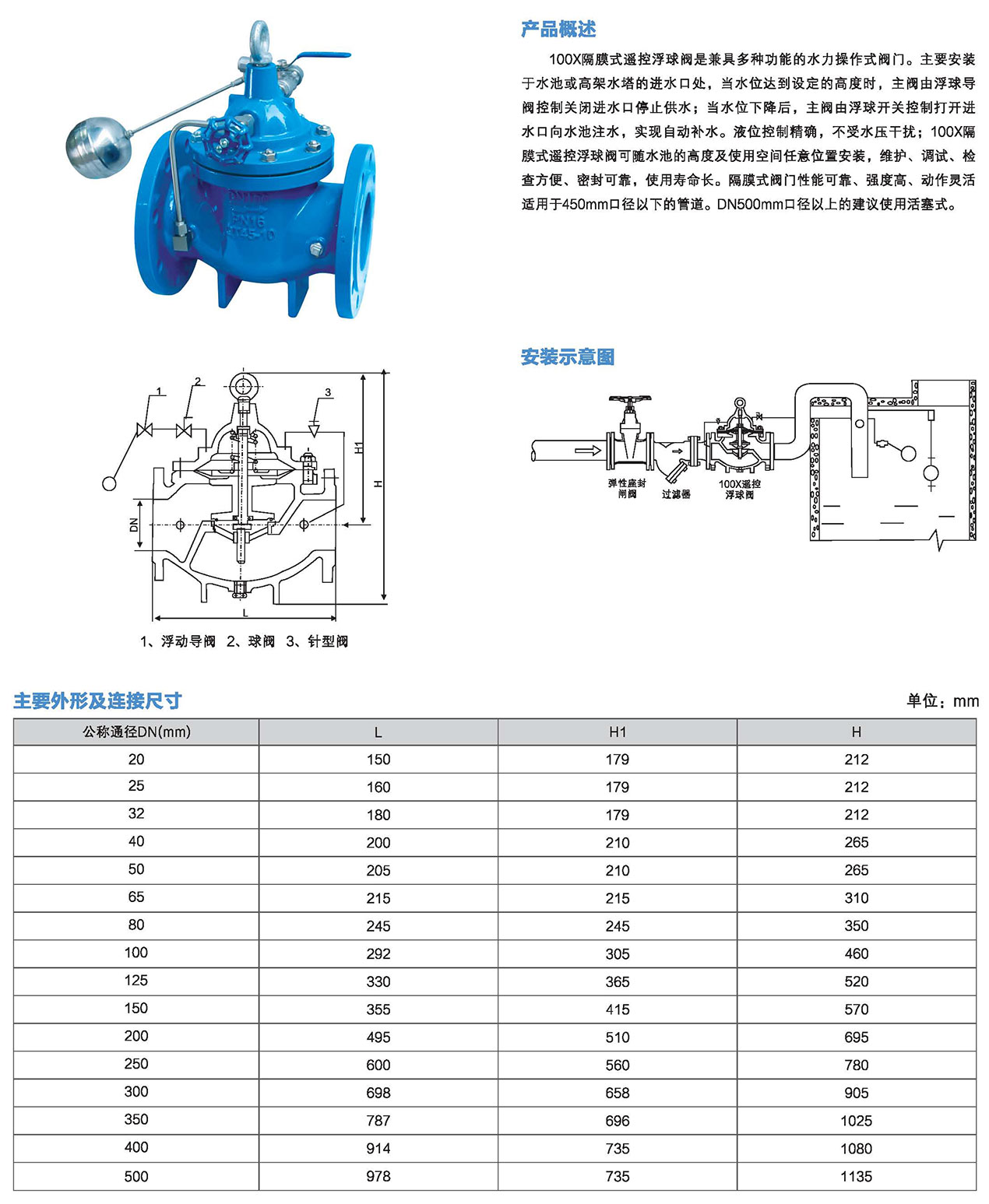 100X隔膜式(shi)遙控浮球(qiu)閥