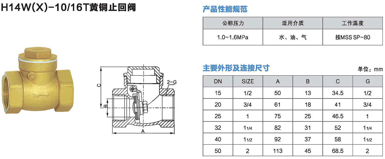 H14W(X)-16T黃銅止(zhi)回閥